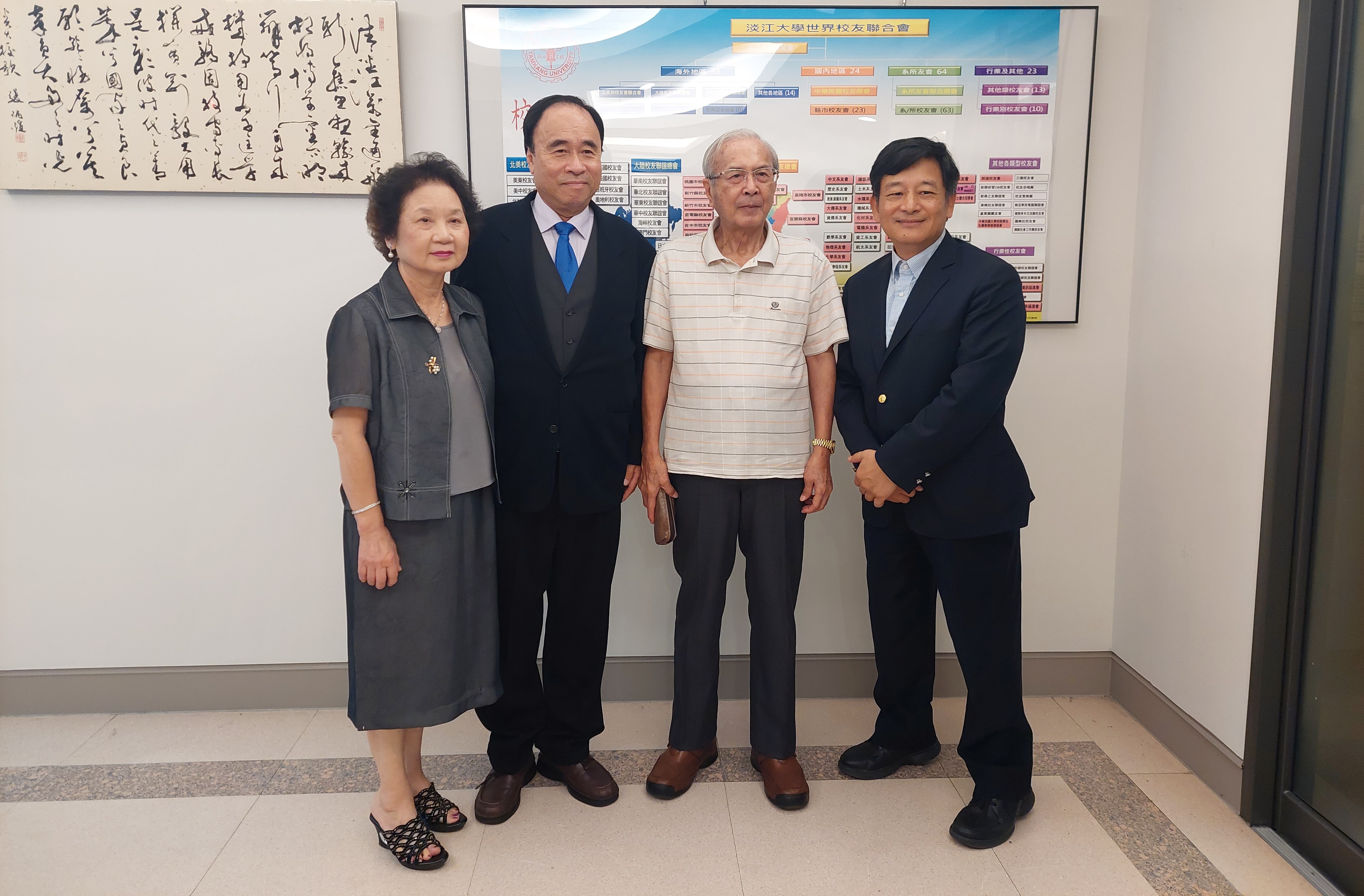 ◎(由左至右)吳秋煌夫婦、周介石學長與本處執行長彭春陽合影留念