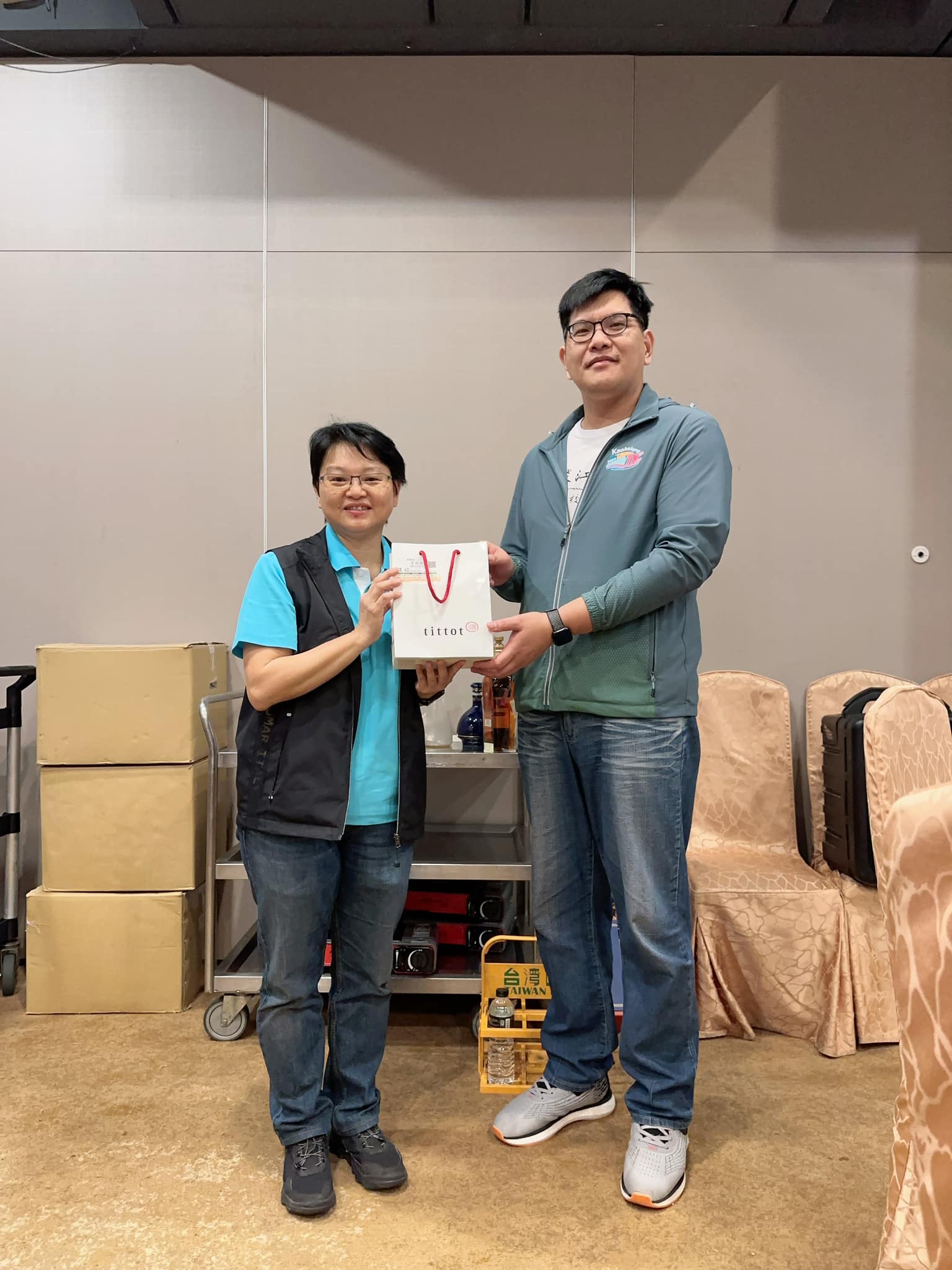 ◎荣誉理事长林敏霖(左)、理事长李明娸(右)致赠礼品予台中市建设局局长陈大田