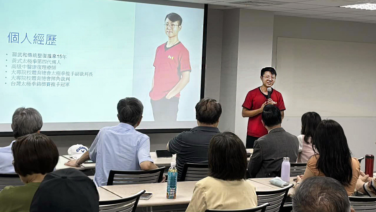 新北市校友会于7月5日(五)晚间,在台北校园D508举办健康讲座,请到日文系校友罗炜杰,以「绽放健康光芒:探索传统整复推拿」为题,分享修整身体的正确方法,也教导骨骼健康的自我检测技巧,避免受伤,正确运用身体姿势,让每个人展现健康活力,并在现场进行义整。25岁的罗炜杰跟随武英门掌门人、黄式太极协会理事长、江夏养生文化创办人黄正斌,学习武术及推拿超过15年,为黄性贤太极拳第四代传人,曾任中华民国大专院校体育总会太极推手副裁判长及摔角裁判,也取得中国大陆高级中医康复理疗师资格。他表示,借由传统整复推拿手法,改善骨骼肌肉问题,并提倡日常自我检测,维持身体健康。(摘自淡江时报1186期:https://tkutimes.tku.edu.tw/dtl.aspx?no=58074)