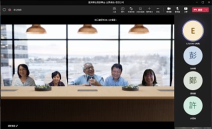◎ 晶英学生与陈清乐学长(中)借由MS Teams线上交流