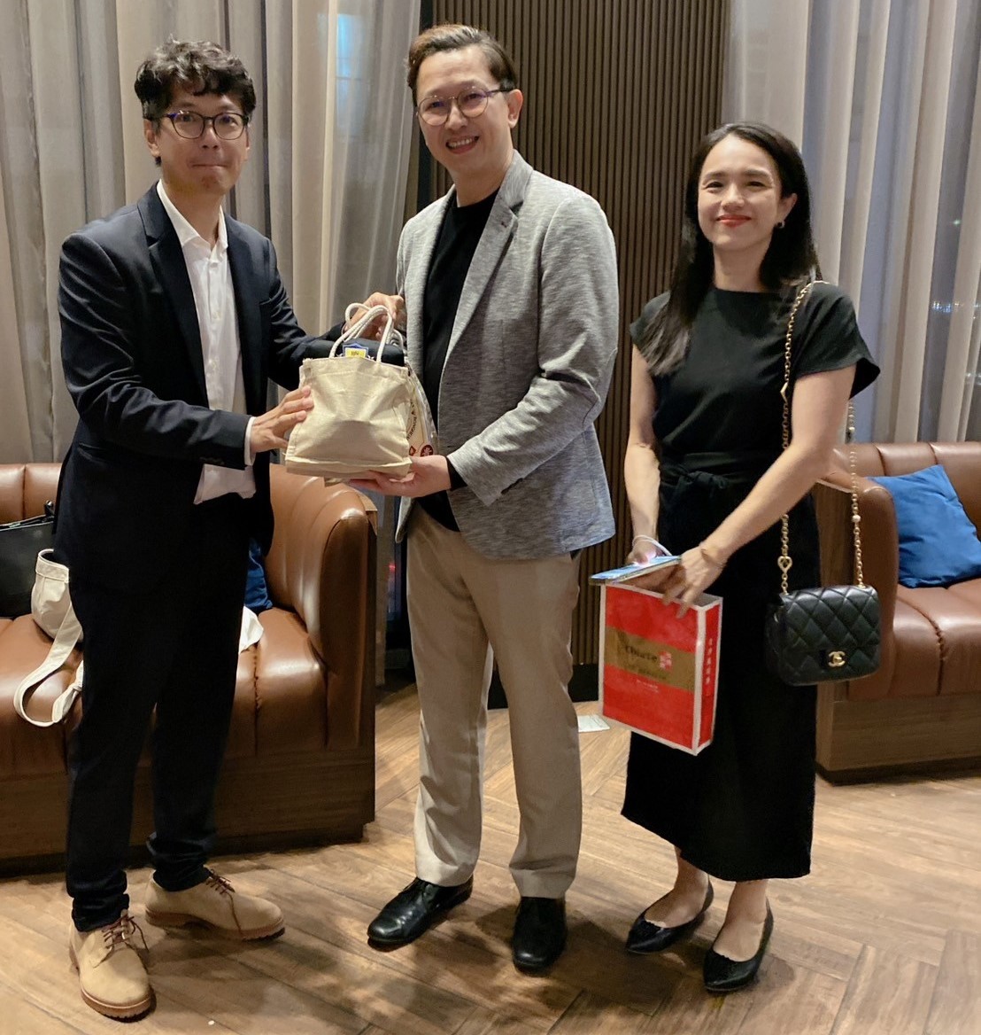 ◎EMBA聯合同學會理事長黎三鳳致贈伴手禮予泰國校友會會長張博淵(右)