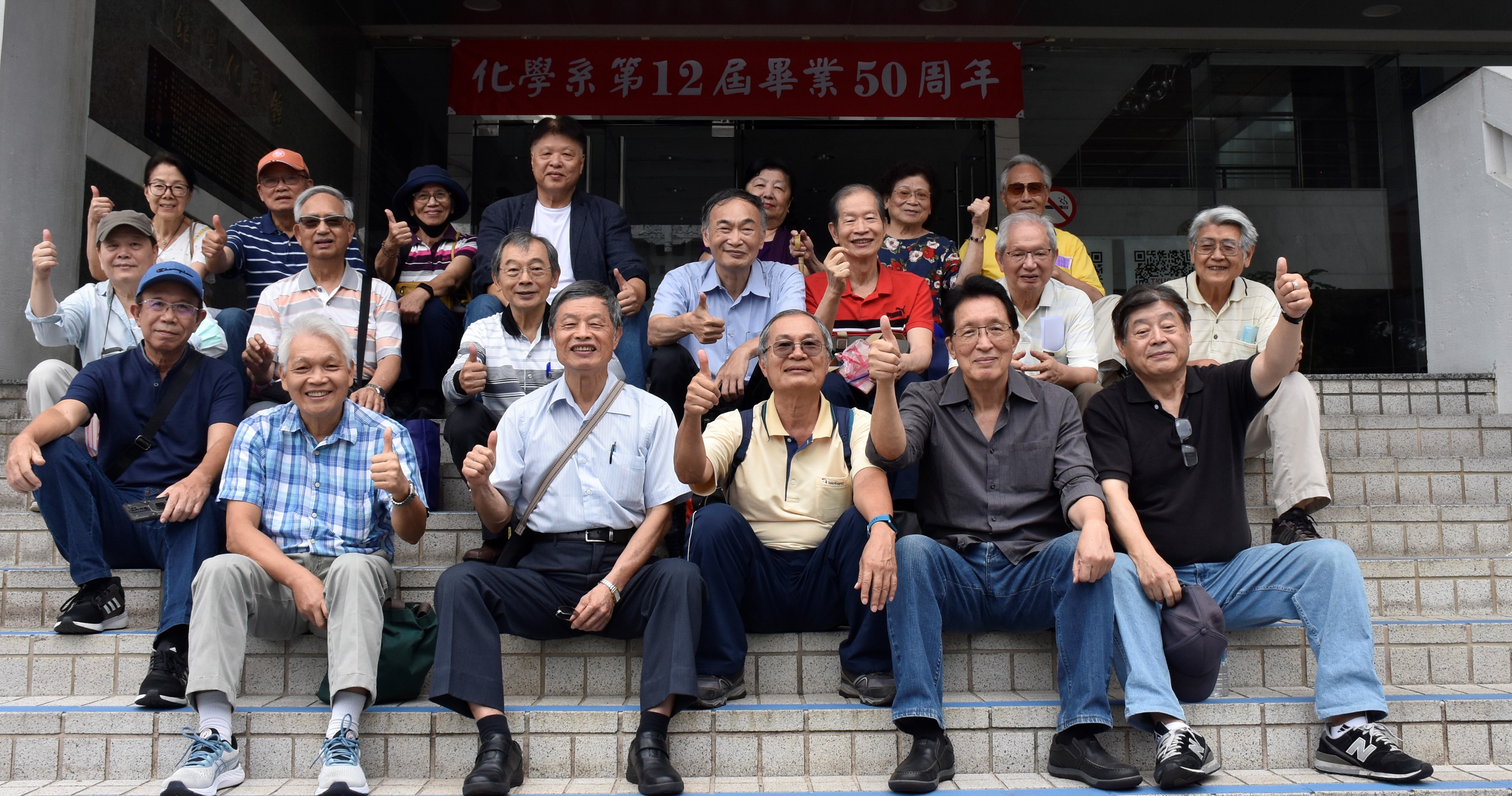 化學系第12屆畢業同學於5月26日(五),舉辦畢業50週年同學會,是日有25位系友及家屬出席。當天活動先在化學館的圖書館鍾靈分館舉行慶祝大會,首先由陳曜鴻主任致詞,歡迎系友返校並簡短報告母系的現況及未來發展,也期許系友大力支持並提供協助,共同為母系的永續發展努力;接著觀賞畢業後50年來活動紀錄影片,在30分鐘的人生跑馬燈,道盡這一屆同學之誼,能維繫50年,至今仍有這麼多位同學一起出席出遊,實屬不易。