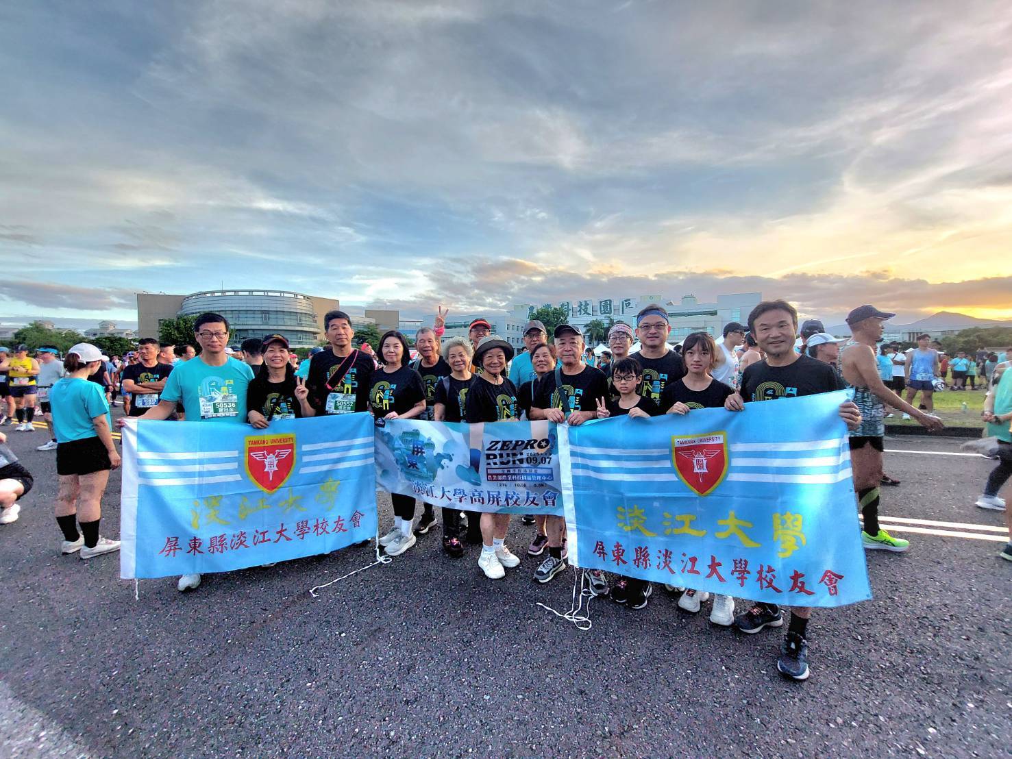 ◎屏東縣校友會農科園區路跑起跑處合影屏東縣校友會延續114年4月20日(日)校友參加順發3C高雄路跑後,因為大家覺得意猶未竟;就繼續號召高雄、屏東校友及眷屬團體報名參與114年9月7日(日)屏東縣農科園區舉辦之路跑。